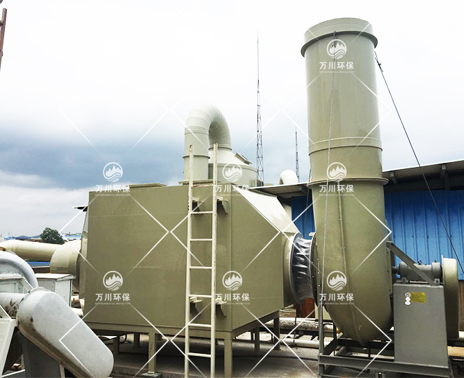 由于廢氣中含有一定的顆粒物,因此廢氣首先進到噴淋塔在進一步除去顆粒物和水溶性物質,而后進入到除霧器,過濾未完全凈化水分,而后進入UV光氧凈化器,最后再進行活性炭吸附裝置,該法具有處理效果高,運行穩定優點。