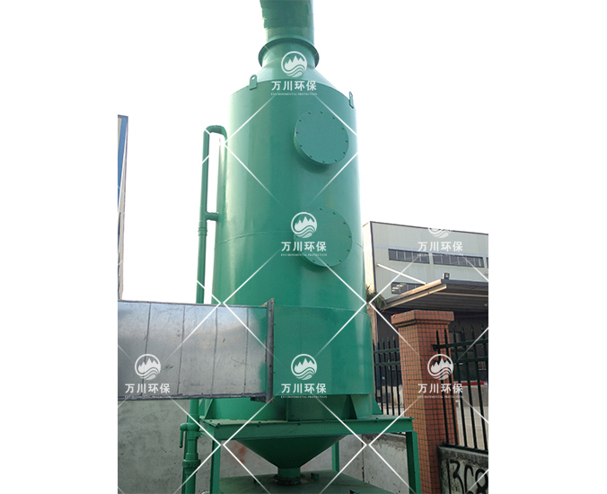 產生的廢氣還有煙塵、油性、有溫度,因此采用噴淋的方式處理。